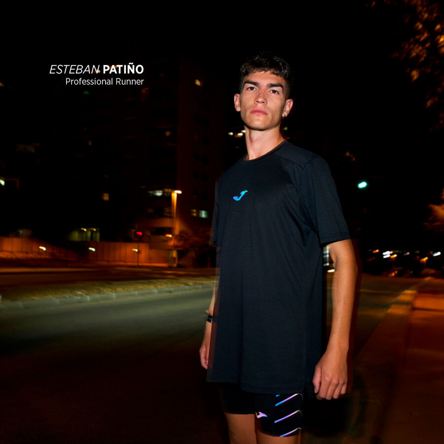 T-shirt à manches courtes pour homme. Modèle technique de running fabriqué avec un tissu haute performance, super respirant pour augmenter la ventilation de la transpiration et offrir du confort pendant les entraînements.