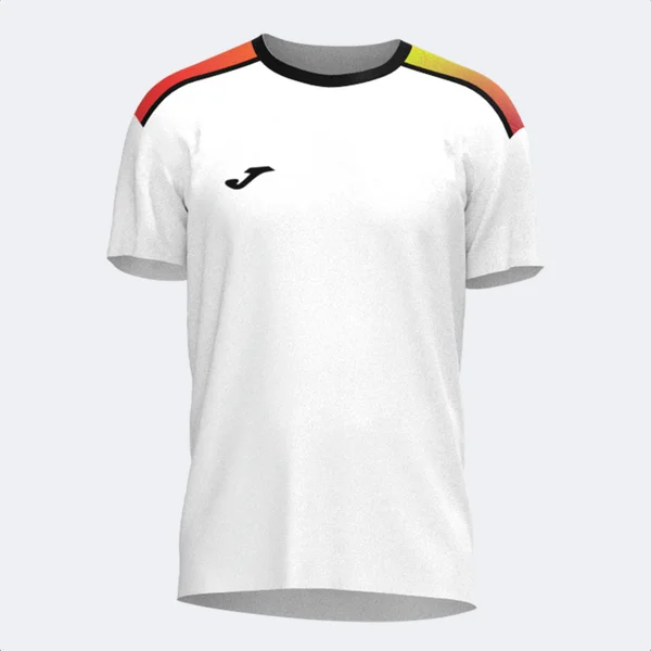 Ce t-shirt arbore un imprimé par sublimation multicolore saisissant sur les épaules et le haut du dos. Juste en dessous, un motif réfléchissant améliore la visibilité du joueur. Le logo Joma est réalisé en silicone thermoscellé grâce à la technologie JOMA SPORTECH, pour un confort optimal et une légèreté accrue.