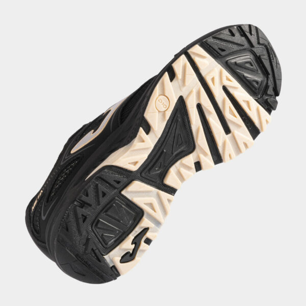 La coupe est réalisée en mesh, accompagnée de perforations VTS qui permettent la ventilation de la transpiration afin de maintenir le pied à une température constante. Elle intègre également un matériau synthétique, qui agit comme un système de ajustement et apporte de la fermeté à la partie supérieure.