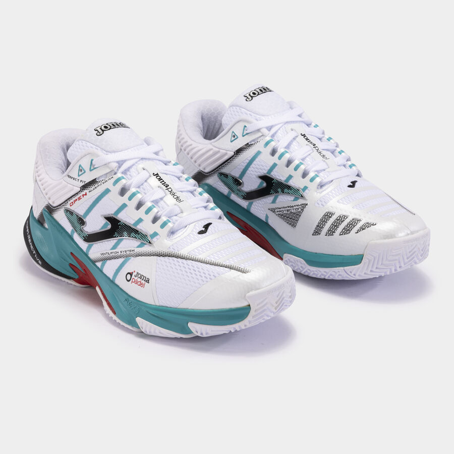 Chaussures spécifiques au padel. Modèle pour la compétition et l’entraînement très fréquent. Elles se distinguent par leur niveau maximal d’adhérence, d’abrasion, de protection et de stabilité.