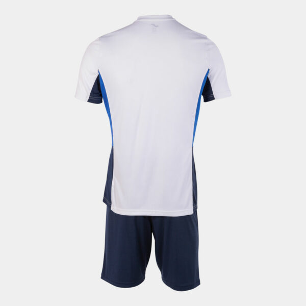 Ensemble homme/garçon composé d’un t-shirt à manches courtes et d’un short. Indiqué pour les entraînements de football et de football en salle par temps chaud. Il s’agit d’un ensemble léger et respirant pour que le corps reste frais et sec pendant le match. Liberté de mouvement et évacuation de la transpiration dans un seul ensemble.