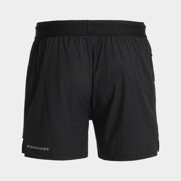 Short de running pour homme. Short élastique et ajusté pour favoriser le confort et la liberté de mouvement. Il comprend une poche latérale pratique, des coutures plates Flatlock pour éviter les frottements et des éléments réfléchissants pour que le coureur soit visible à tout moment.