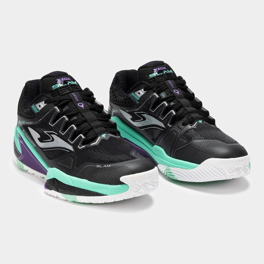Chaussures de padel. Haut de gamme, performances maximales et technologie dans une seule chaussure développée pour le padel professionnel. Destinées aux joueurs avec une bonne technique ayant besoin d’un maximum d’amorti, de stabilité et de protection. Testées par des joueurs tels que l’ancienne numéro 1 mondiale Carolina Navarro et Juanlu Esbrí.