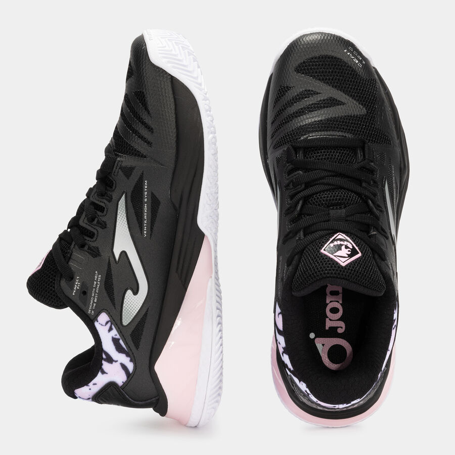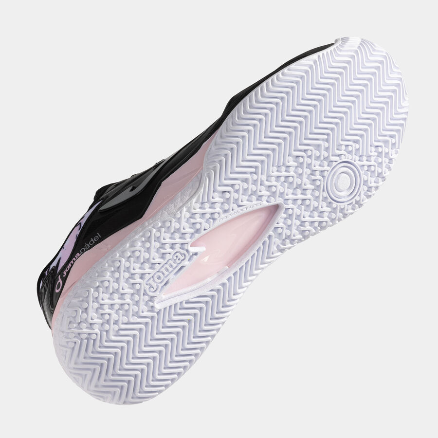 Chaussures de padel pour femme. Modèle professionnel haut de gamme destiné aux joueuses recherchant de hautes performances sur le court. Ils offrent un niveau maximal de protection, de stabilité et de performance. Testé par des joueurs comme la légende du padel Juani Mieres et Alba Galán. Tige confectionnée en mesh technique. La technologie VTS optimise la respirabilité et maintient les pieds à température constante. Le système de réglage thermoscellé JOMA SPORTECH offre un maintien confortable et léger. De plus, les parties sensibles sont renforcées avec la technologie PROTECTION. Semelle intermédiaire en phylon flexible, léger et capable d’amortir les chocs. Ses deux STABILIS maximisent la stabilité des mouvements et préviennent les éventuelles blessures. Semelle Omni en caoutchouc DURABILITY offrant une adhérence supérieure, permettant des changements de direction agiles sans perdre de stabilité.