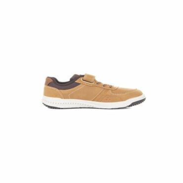 Baskets camel pour garçon de la marque Joma. Elles sont dotées d’une fermeture à lacets élastique et d’un scratch.